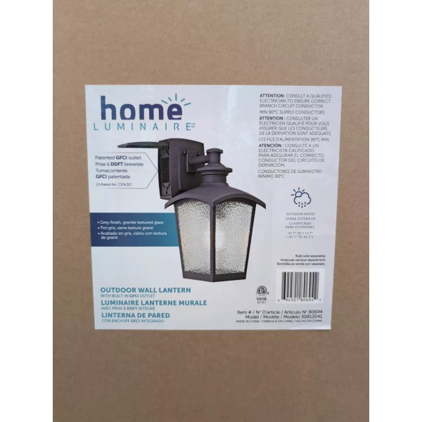 Brand new exterior wall light with built in GFCI outlet. New in box!