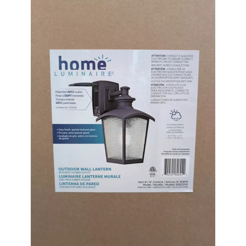 Home Luminaire 80694 Spence 1-Light Outdoor Wall Lantern Grey Finish Granite Gls