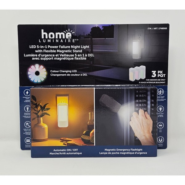 home LUMINAIRE LED 5-in-1 Power Failure 3-Pack Night Light with Flexible Magentic Stand - 1 Set