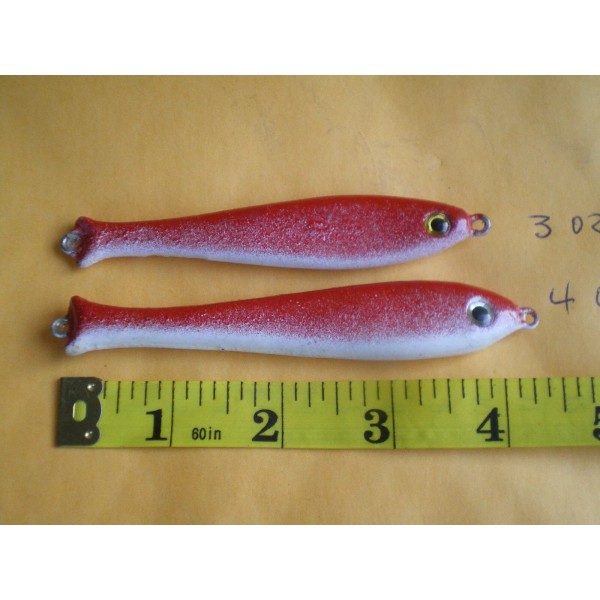 HOME MADE 16 PCS. HERRING CASTING/MINNOW LURE BAIT FISHING JIG, 3, 4 OZ. 8 EA. RED/WHITE