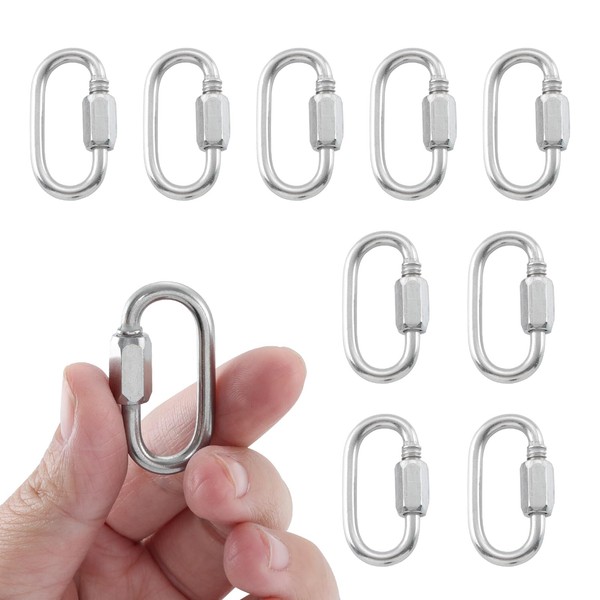 HOME MASTER HARDWARE 1/8 inch Stainless Steel D Shape Quick Link Chain Links Locking Carabiner Connector Keychain Ring Buckle 10 Pack
