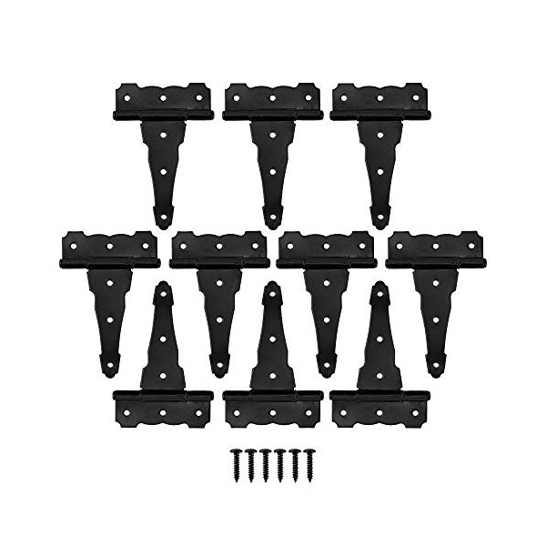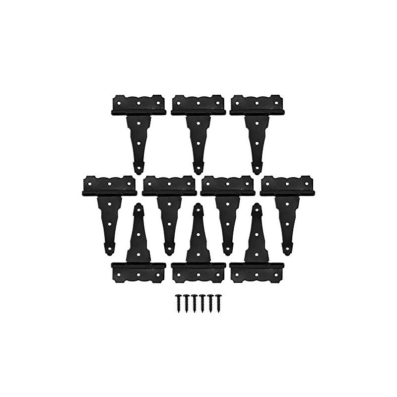 - Package include 10 Pack heavy duty decorative T hinge and 60 Pcs mounting screws hardware .