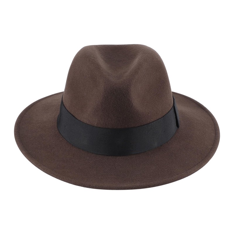 Home Prefer Mens Wool Fedora Hat with Band Classic Wide Brim Fedora Hat for Men Women Panama Dress Hat, Coffee, 7 1/4-7 1/2