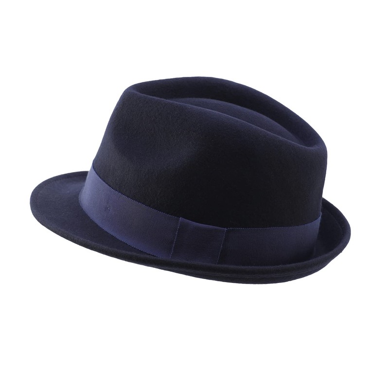 - Fedora 100% lana con corona pellizcada y banda de grogrén