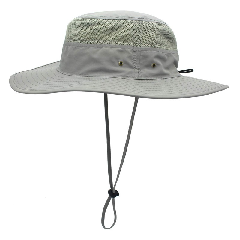 Home Prefer Unisex Daily Outdoor Sun Hat Camouflage Mesh Bucket Hat Wide Brim Boonie Fishing Hats Grey