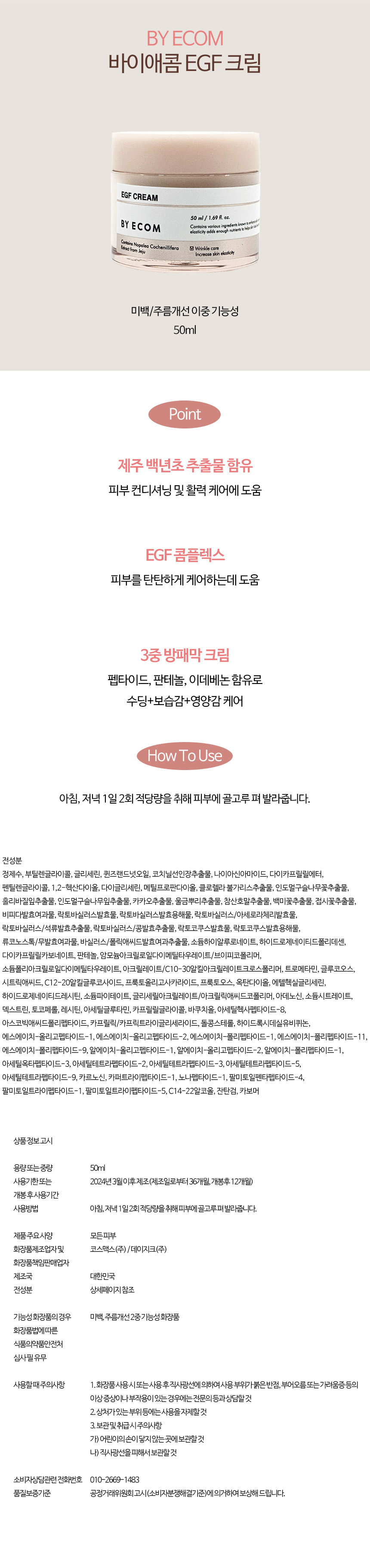 홈쇼핑 최신상 바이애콤 EGF 콜라겐 크림 50ml 2개+마스크 2매