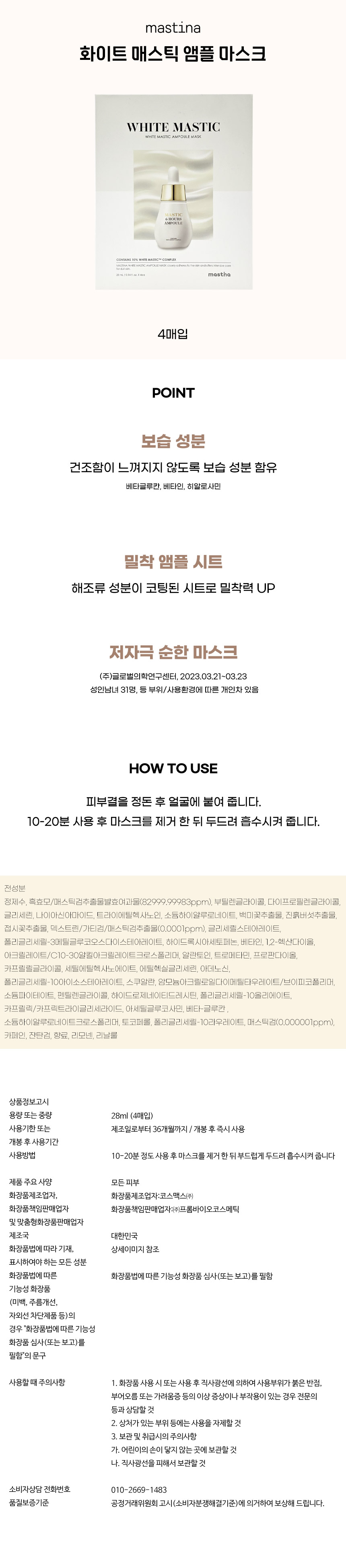 홈쇼핑 최신상 매스티나 화이트 매스틱 앰플 마스크팩 1박스