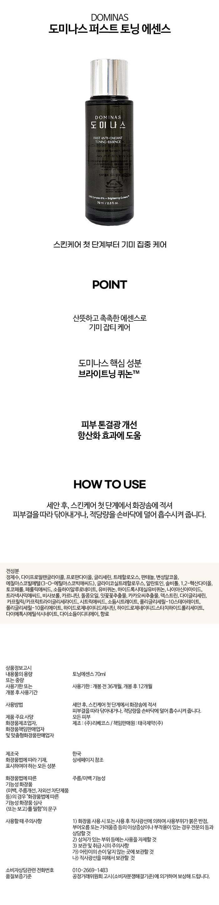 Home Shopping TG Dominas First Toning Essence 70ml 2pcs / 홈쇼핑 TG 도미나스 퍼스트 토닝 에센스 70ml 2개