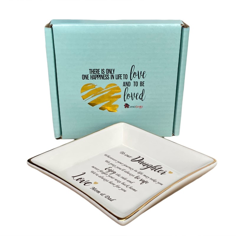 HOME SMILE Engagement Wedding Gifts for Daughter From Parents,Daughter Ringt Dish Jewelry Tray-Birthday,Christmas,Valentine's Day Gifts for Daughter From Mom and Dad