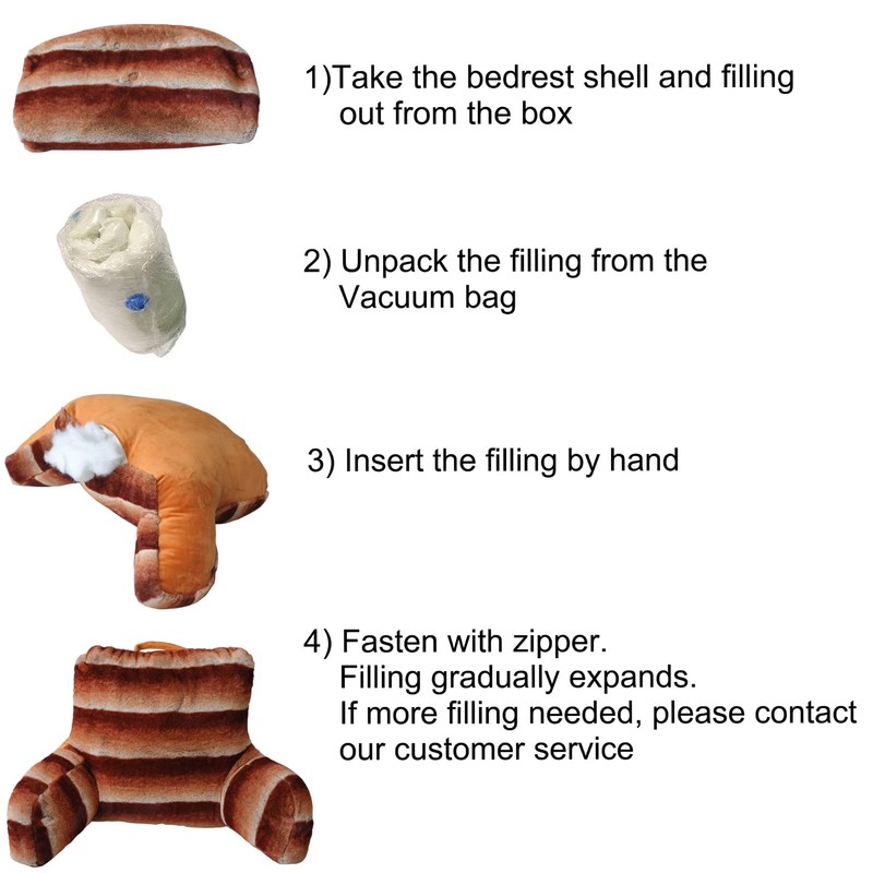 - Assembly Notes: Bedrest Cover and Filling Come Separately for Do It Yourself Purpose. Take delight in the DIY filling that is packaged in a vacuum-sealed, space-saving reusable bag. Bed rest shell is included in the box, ready to be filled. Easy fill directions create a fun Do It Yourself atmosphere and allow you to take pride in your new home addition