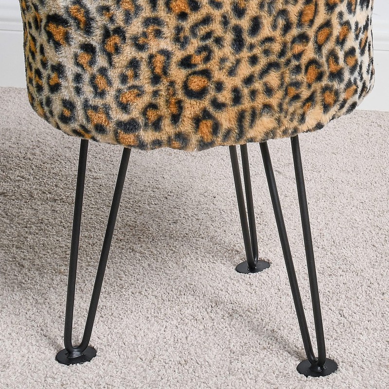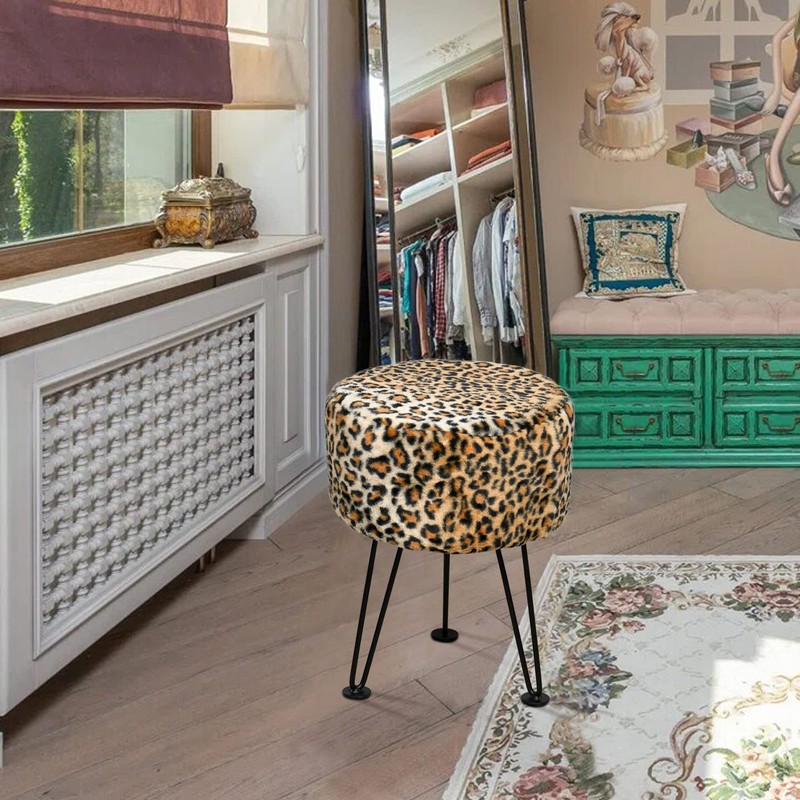 - Dimension: This leopard type ottoman measurement is 13" x 13" x 17" inches when assembled and offers a 150-pound capacity, Metal hairpin legs are sturdy and durable to withstand full weight capacity