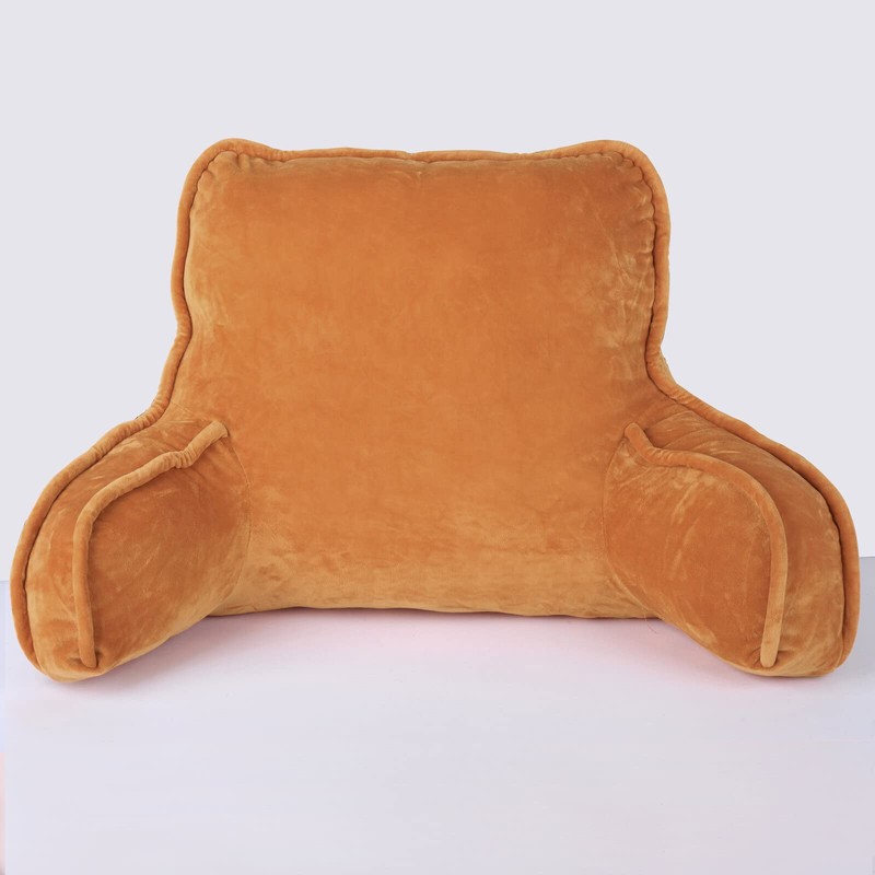 Home Soft Things Super Soft Bedrest Reading Pillow, Lounger Backrest Pillow for Sitting in Bed with Arms Pockets, 20" x 18" x 17", Burnt Orange