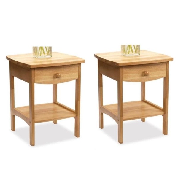 Solid Wood End Table / Nightstand in NaturalThe Home Square Nightstand projects subtle style with it's gently rounded corners. Its simple design and minimal detail makes it a perfect addition to a variety of decor styles, and practicality is part of it's appeal as well with one drawer and a convenient open shelf for bedside storage.