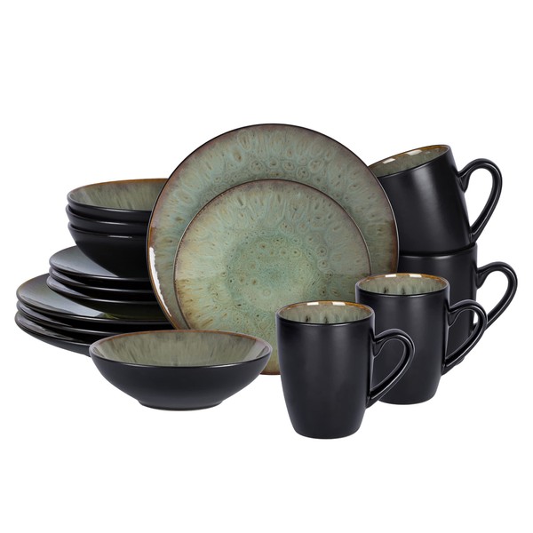 Home VSS, Stoneware Dinner Set Reactive Glaze (16pc Set, Java Green)