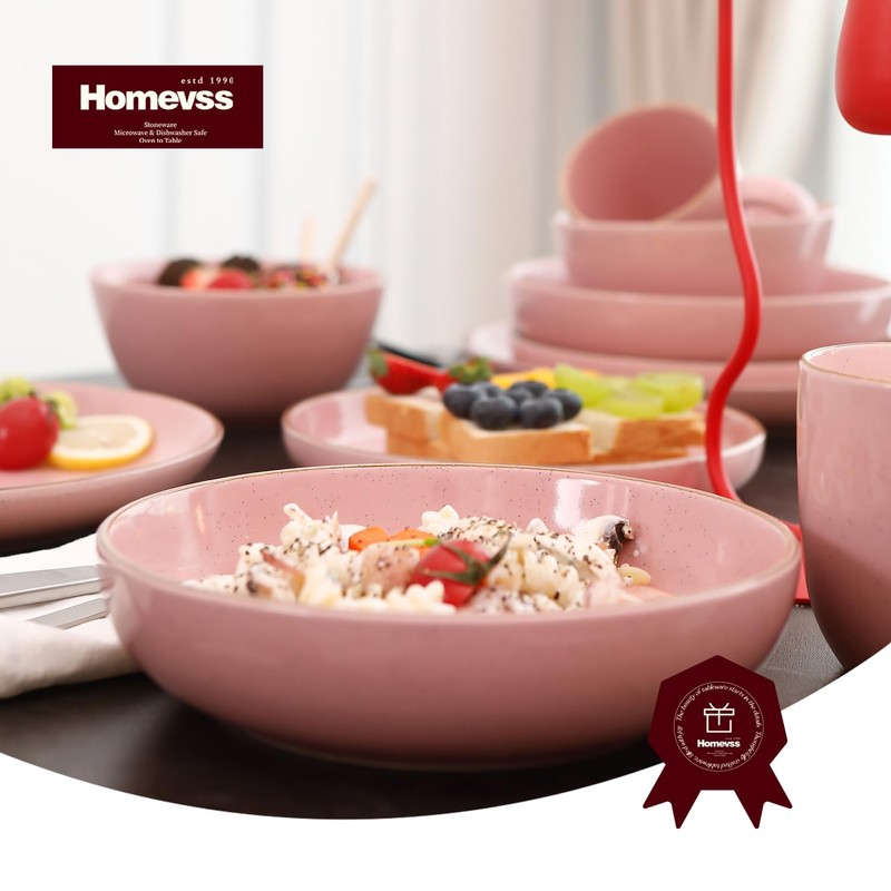 HomeVss 20-Piece Dinnerware Set - Serves 4, Shiny Glaze Pink with Speckle Effect Plates & Bowls Set | Microwave & Dishwasher Safe