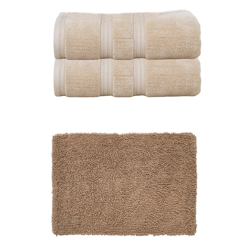 Home Weavers Fantasia Collection 100% Soft Cotton Super Absorbent 2 Pcs Bath Towel Set & 1 Pc 21x34 Bath Rug, Machine Washable & Non Slip (Set of 3), Linen