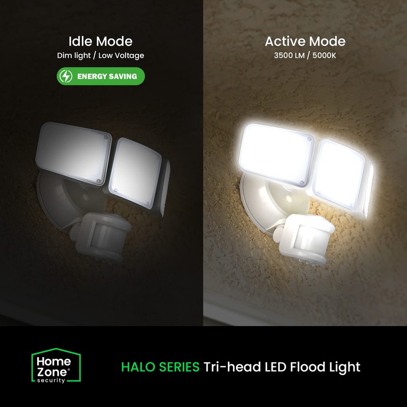 - ✔ TOTAL COVERAGE: Keep your home on alert throughout the night with the all new Home Zone Security Triple Head Motion Sensor Flood Lights equipped with a full 240 degree motion detection range covering over 70 ft. in distance