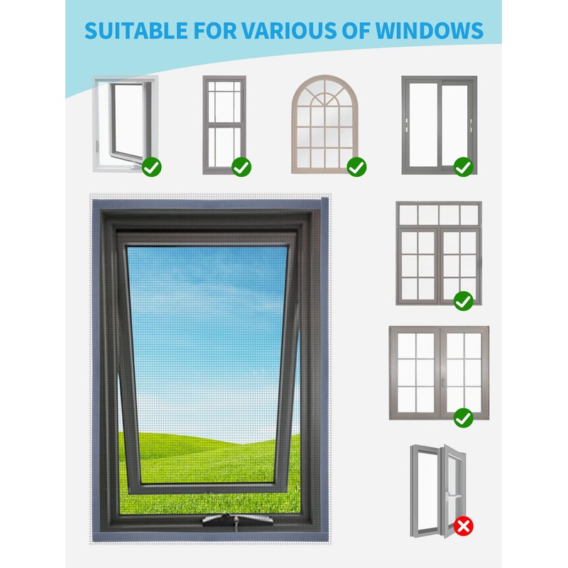 - No limit of windows: Keep bugs at bay while allowing fresh air to circulate freely. This DIY adhesive windows screen suitable for all window types, Aluminum window frame, sliding window, casement window, louvre bathroom/toilet window and balcony.
