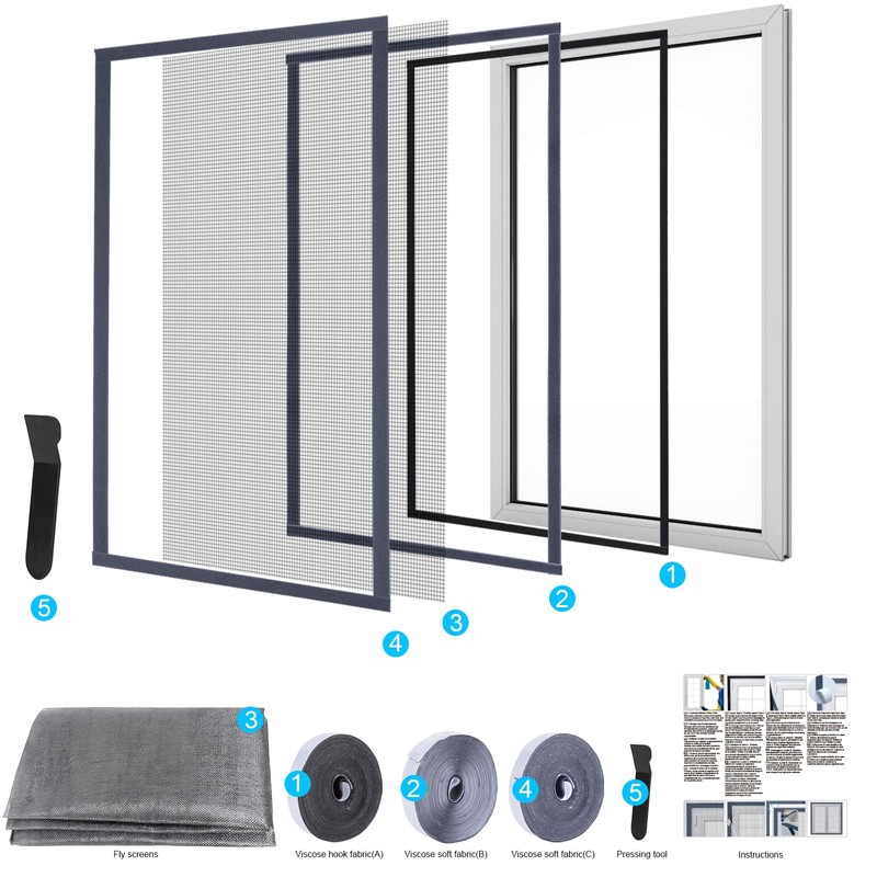 Window Screen with Hook and Loop Adhesive Edging Frame is Easy-install, convenient for peel and stick, and resist deformation despite frequent use.