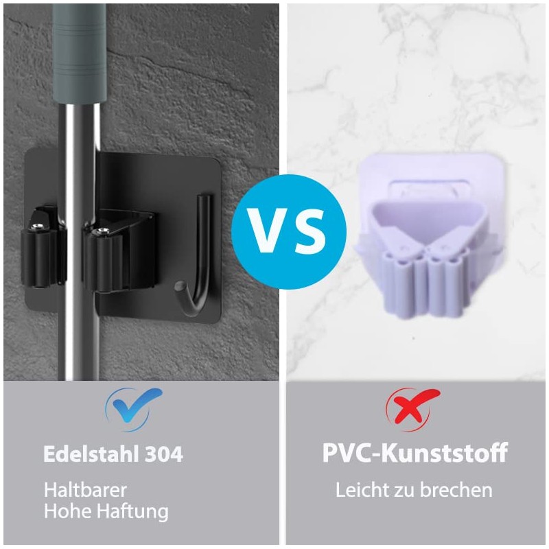 - Perfect for saving space: with the homeasy broom holder, you can easily organise your mops, brooms, rags, umbrellas, etc. Keep your kitchen, storage room, bathroom or garden clean and tidy from now on.