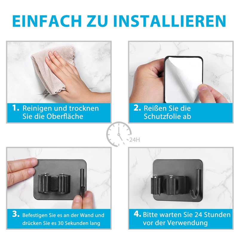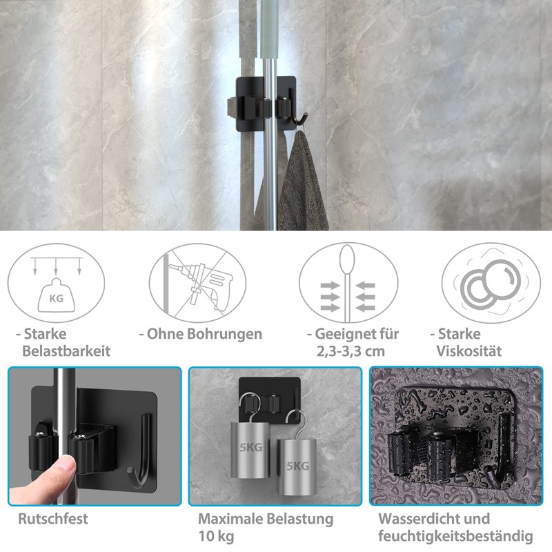 - Easy to install: The latest Homasy mop holder requires no holes, no wall holes and no tools. You can easily install it with bare hands!