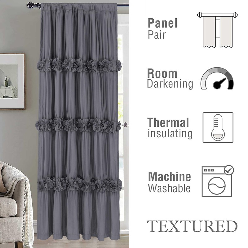 - 「Exquisite Craft Make Your Room Different」: Along with the unique ruching, there are 3 rows of handcrafted butterfly flowers details creating a sweet and classy vision for your room. Combined the elegance of ruffles and luxury of bow tie, these light blocking curtains give a finishing touch of class and sophistication to instantly brighten your space.