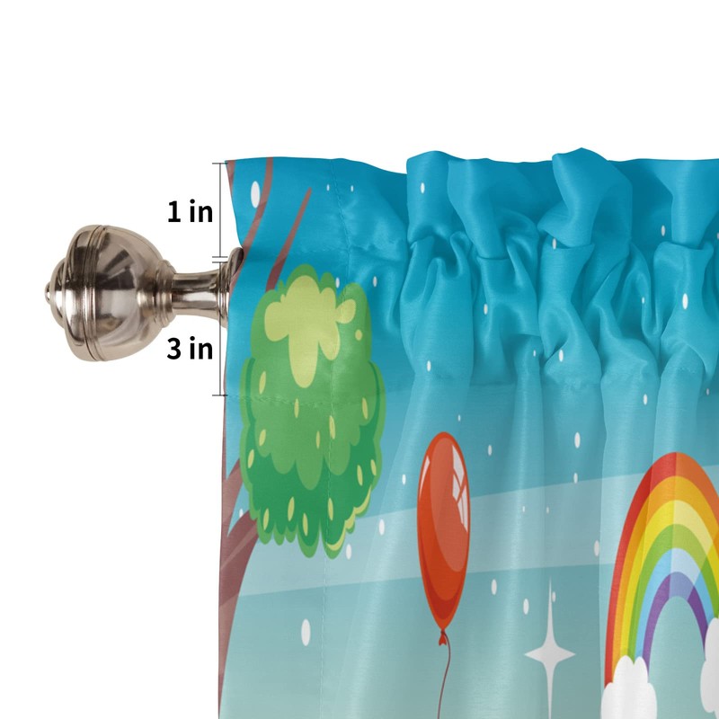Homechoid Children's Day Curtain Valance for Windows/Living Room/Kitchen/Bathroom/Farmhouse, Kids Cartoon Handprint Bee Sun Rainbow Short Rod Pocket Tier Curtain Window Treatment, 1 Panel 54x18