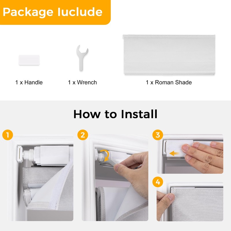 - 【No Drilling, 20-Second Quick Installation】: The Roman shade features the latest easy tension-mount system—no tools or drilling required! It can be securely installed in just 20 seconds without damaging your walls, making it a time-saving, effortless, and removable solution—perfect for renters. Made of linen fabric, the shade blends seamlessly with your home decor, meeting your needs for both stylish design and simple operation.