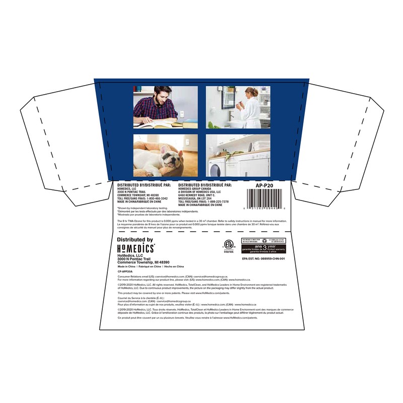 - What’s in the Box: (1) HoMedics TotalClean Plug-In UV Air Sanitizer