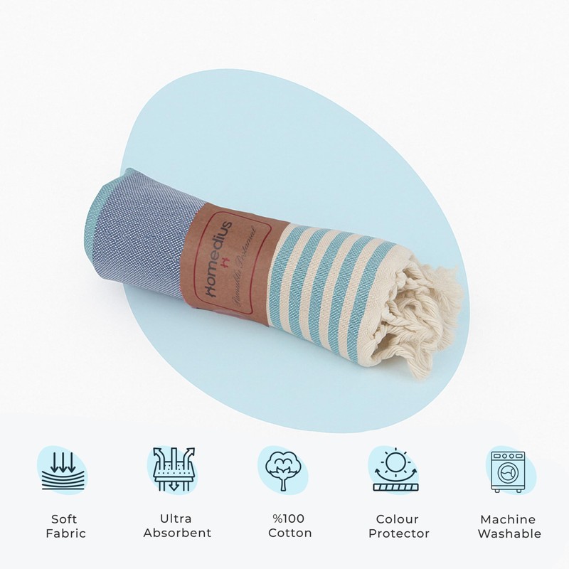 homedius American Cotton Peshtemal Towel – 100x180 cm, Lightweight, Quick Dry, High Absorbency, Soft & Breathable Hammam Beach Towel, Multi-Purpose Use (1, Turquoise)