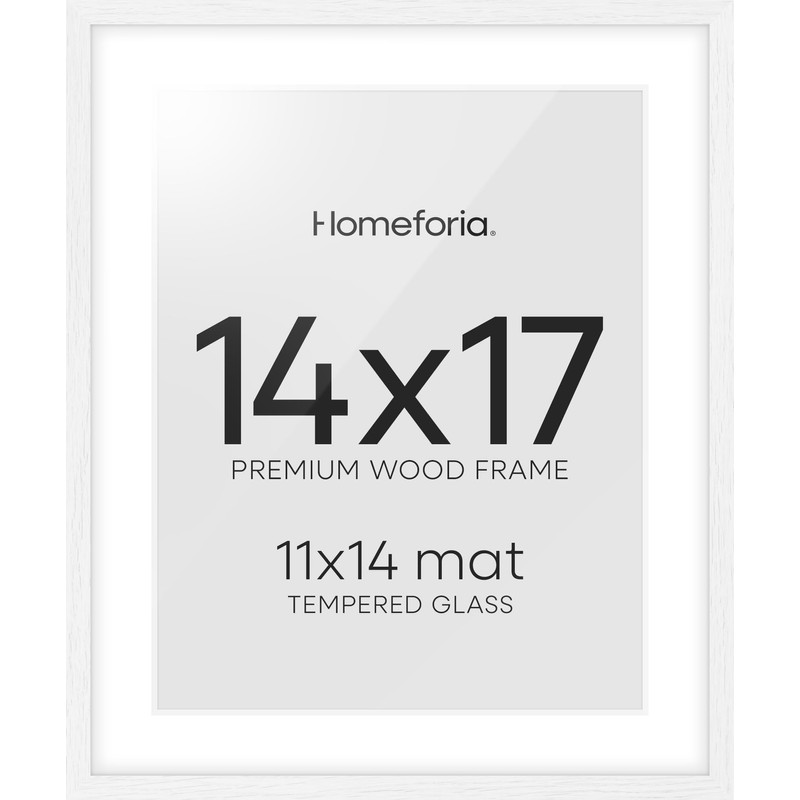 Homeforia 14x17 Picture Frame White, High End Oak 14x17 White Wood Frame with Mat 11x14 Photo, 14 x 17 Wooden Poster Frames Matted to 11 by 14, 17x14 Hanging Frames, Tempered Glass, Wall Kit, Set of 1