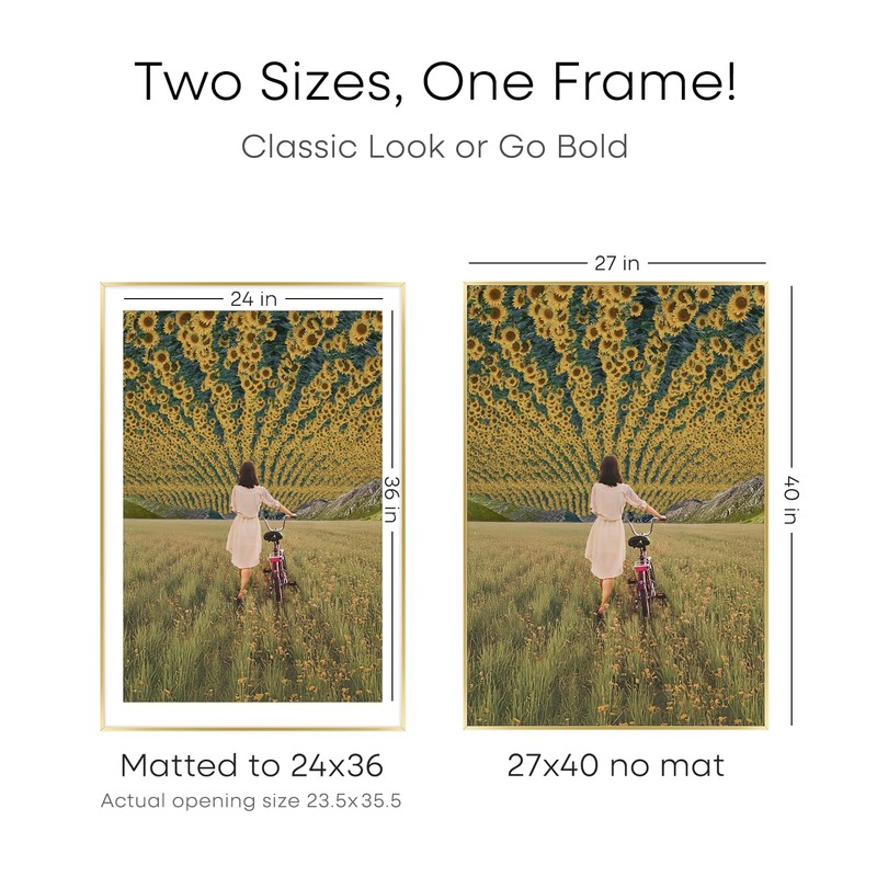 Homeforia 27x40 Poster Frame Gold, High End Metal 27x40 Picture Frame with Ma...
