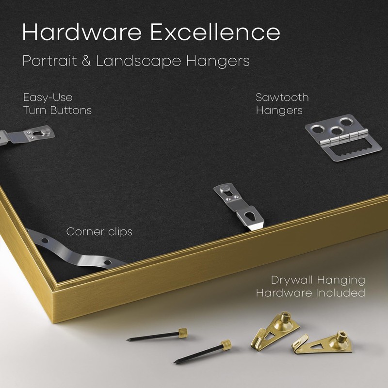Homeforia 27x40 Poster Frame Gold, High End Metal 27x40 Picture Frame with Mat 24x36, 27 x 40 inch Frame Matted to 24 x 36 Photo, 40x27 inches Frames, Tempered Glass, Wall Hook Included, Set of 1