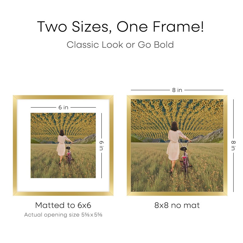 Homeforia 8x8 Picture Frames Gold, High-End Metal Square 8 x 8 Gold Frame for Wall or Tabletop, 8x8 Gold Poster Frame, Gold Photo Frame 8x8 with Mat 6x6, Tempered Glass, Wall Hook Included, Set of 1