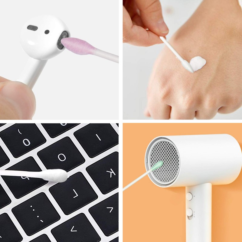• ฅ՞ﻌ՞ฅ︎ 【FEATURES】: Pure Organic Cotton, Soft, Gentle. Lint-Free Absorbent: Say goodbye to annoying lint residue with our lint-free cotton swabs. The absorbent nature ensures efficient and effective cleaning, leaving you with a flawless finish [Versatile Cruelty-Free]: Our cotton swabs are not only perfect for daily beauty care and makeup, but also for pet care, household cleaning, personal hygiene, art, and craft cleaning. Plus, they are cruelty-free, so you can feel good about your purchase.