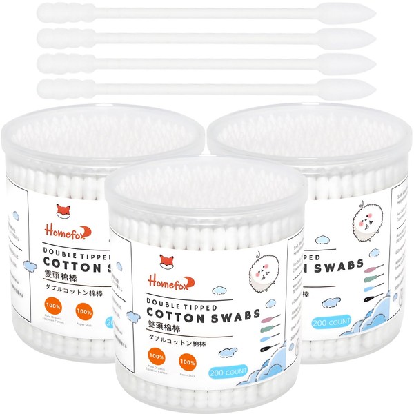 ฅ՞ﻌ՞ฅ︎ 【PRODUCT INCLUDE】: 3 Pack of the HOMEFOX Cotton Swabs Spiral Pointed - 200 Count (Total 600 Counts) Organic Cotton Buds Charcoal Gothic Double Side Tightly Wrapped Precision Cotton Tips Paper Stick Soft Gentle Lint-Free, Spiral & Pointy (White)