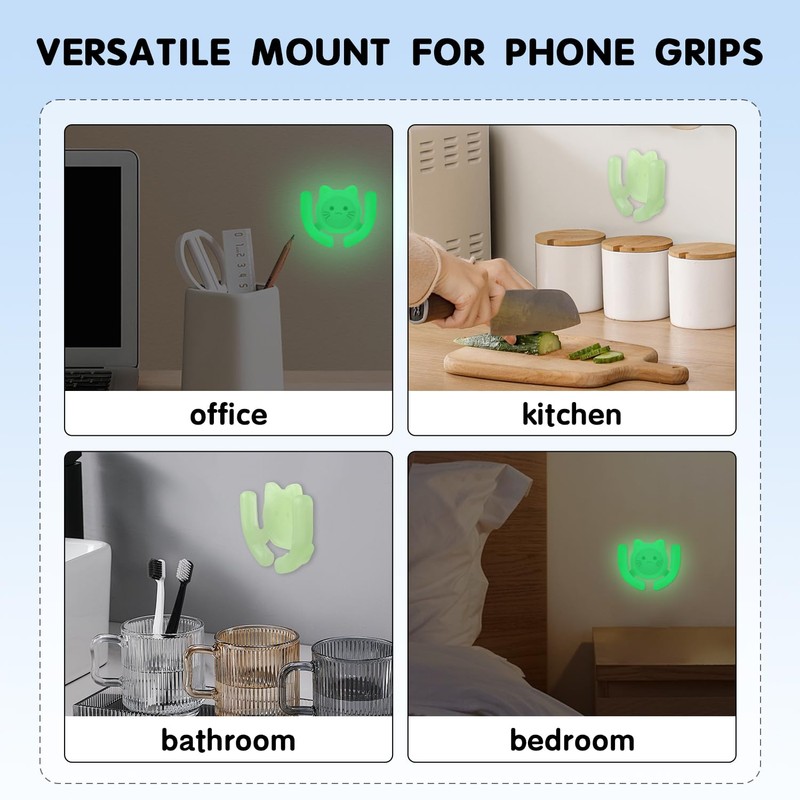 - /ᐠ。ꞈ。ᐟ【PRODUCT INCLUDES】: 2 Pack of the HOMEFOX GLOW IN THE DARK special version Multi-Surface Holder Car Mount Compatible for Pop socket Grips Hand-Free Device Support Accessories Cute Cat Phone Socket Grip Adhesive Sticky Attachment Accessories, can be used on Dashboard, Home, Office, Kitchen, Desk.