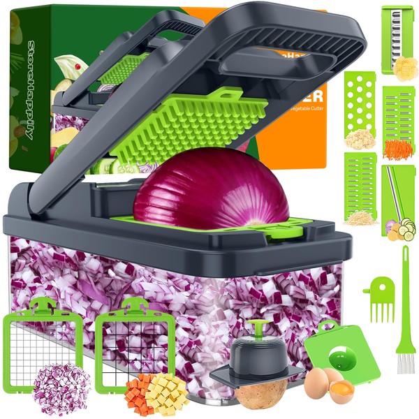 HomeHacks Vegetable Chopper Vegetable Cutter, 12 in 1 Kitchen Gadget, Dicer, Slicer, Onion Chopper, Salad Chopper, Cheese Grater & Egg Separator - Multi-Functional Veggie Chopper Lid with Handle