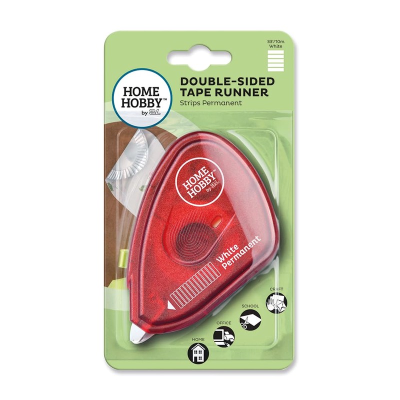 - THEHOMEHOBBY BY 3L DOUBLE SIDED TAPE RUNNER STRIPS PERMANENT 10M features permanent white adhesive strips for use in home, office, school and crafts.