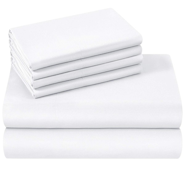 HOMEIDEAS King Size Bed Sheets - 6 Piece Set (White) - Extra Soft Brushed Microfiber 1800 Bedding Sheets, Deep Pocket, Wrinkle & Fade Free