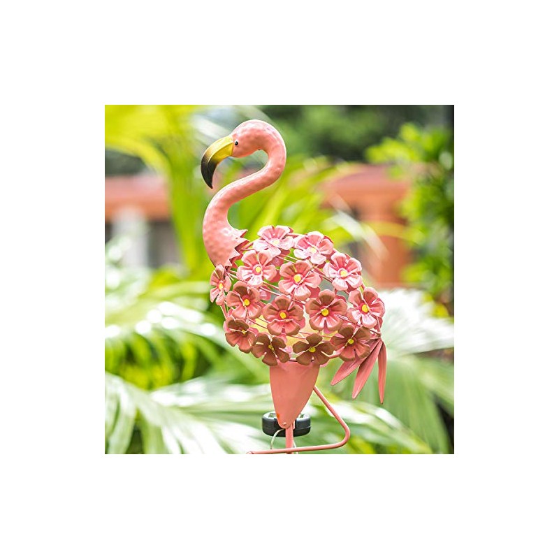 HOMEIMPRO Garden Solar Lights,Flamingo Pathway Outdoor Stake Metal Lights,Waterproof Warm White LED for Lawn,Patio or Courtyard