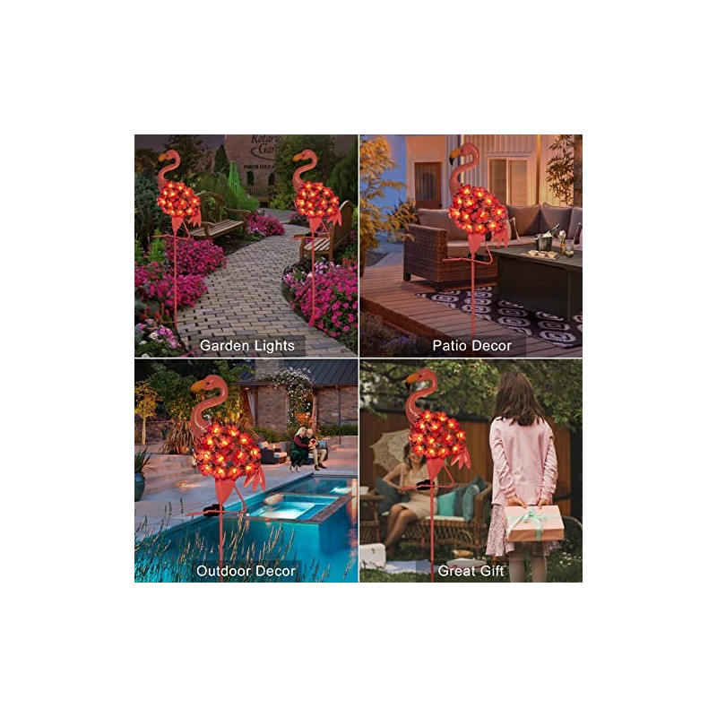 HOMEIMPRO Garden Solar Lights,Flamingo Pathway Outdoor Stake Metal Lights,Waterproof Warm White LED for Lawn,Patio or Courtyard