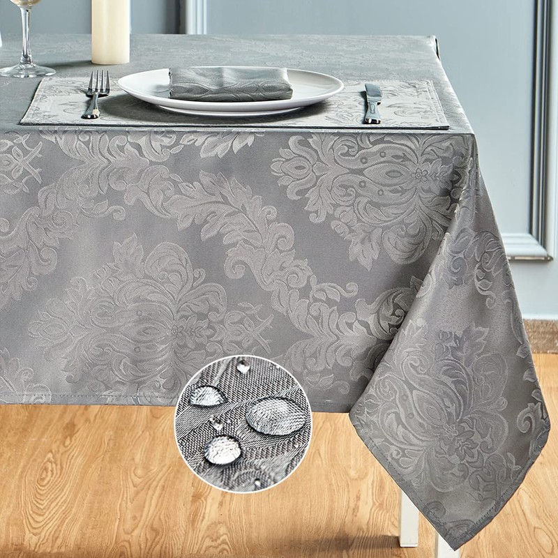 HomeJoy Rectangle Table Cloth, Waterproof Wrinkle Resistant Washable Jacquard Polyester Oblong Rectangular Tablecloth, Fabric Table Cover Kitchen Dining Dinner (60x120 Inch, 10-12 Seats, Grey Gray)