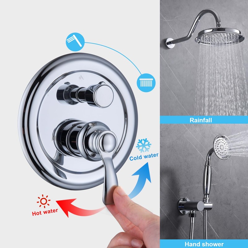 - 2-Way Shower Diverter: Shower diverter valve allows you to easily switch water flow between shower head and handheld sprayer.