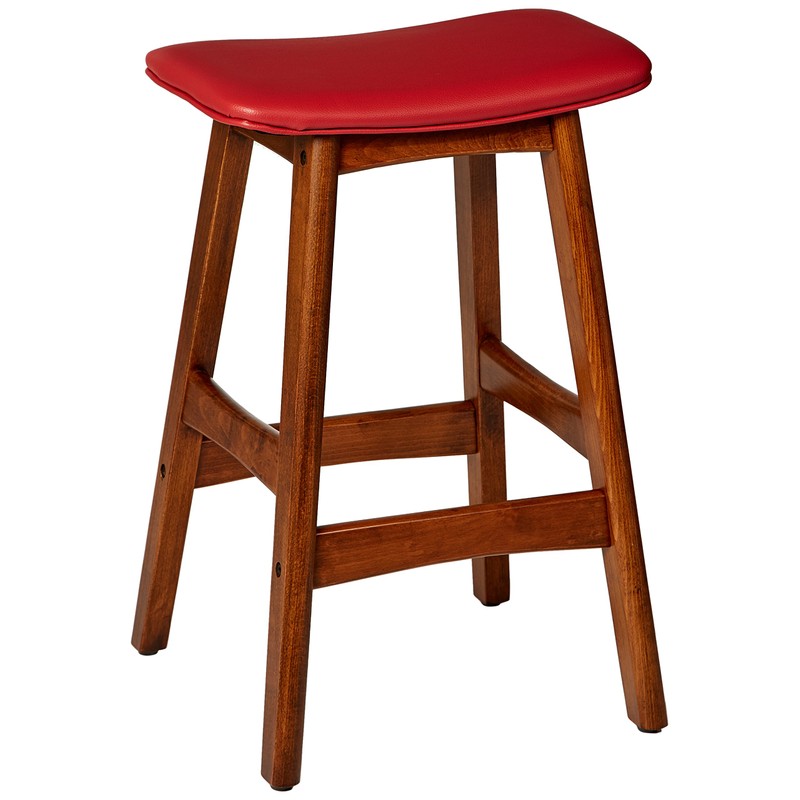 Homelegance Poindexter PU Upholstered Saddle Barstool (Set of 2), Red