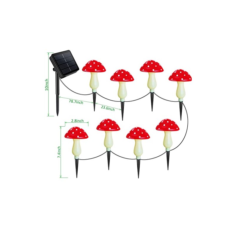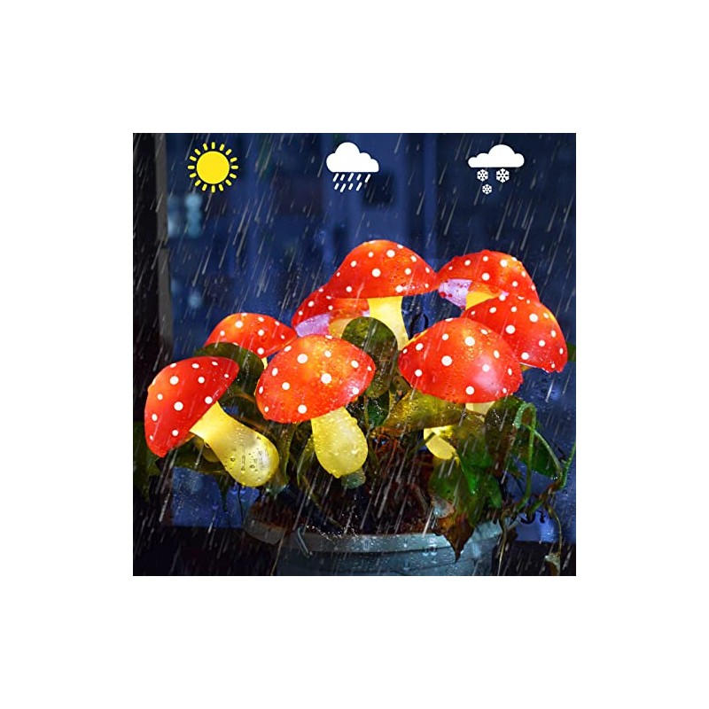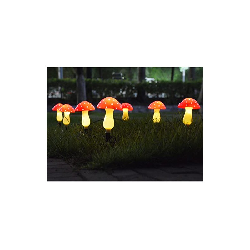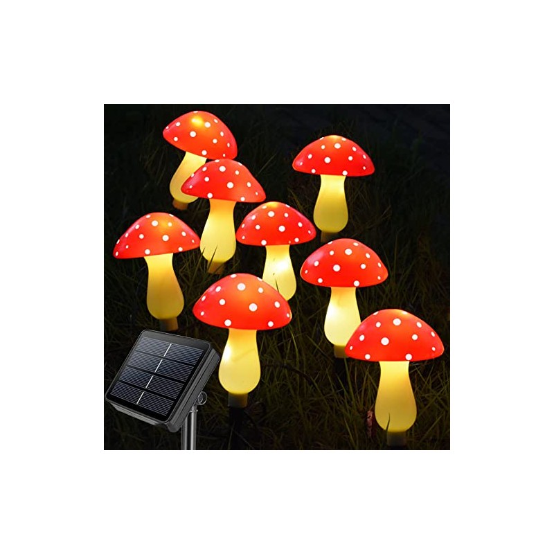 - 【8 Pack Upgraded Mushroom Solar Lights】8 Realistic Red Mushrooms, more mushrooms to add more festive touch to your garden. Original and unique design, easily brings fun and whimsical charm to your garden.
