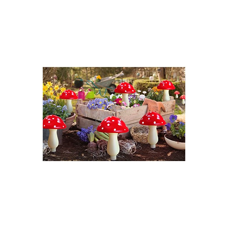 - 【Easy to Use】Simply insert into lawn, easy to use. These outdoor mushrooms are very cute, add them to garden flower pot to make a nice display during the day as well as at night.