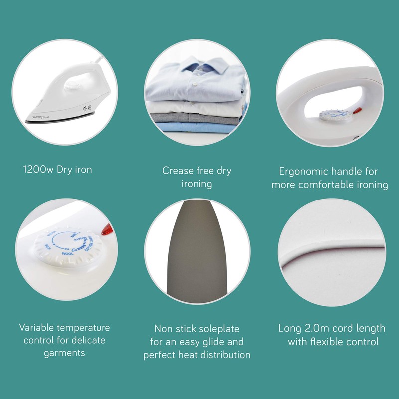 Homelife for easy living Coral X-15 1200w Dry Iron/Non-stick Soleplate/Variable Temperature Control / 2m Long Cord / E7051 / White