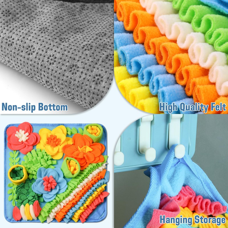 - 🐕【PET SAFE MATERIALS】Our snuffle mat is made of high quality felt material, no odor, fresh color and safe, absolutely healthy for your furry companion, felt material is easy to clean, suitable for washing machine or hand washing.
