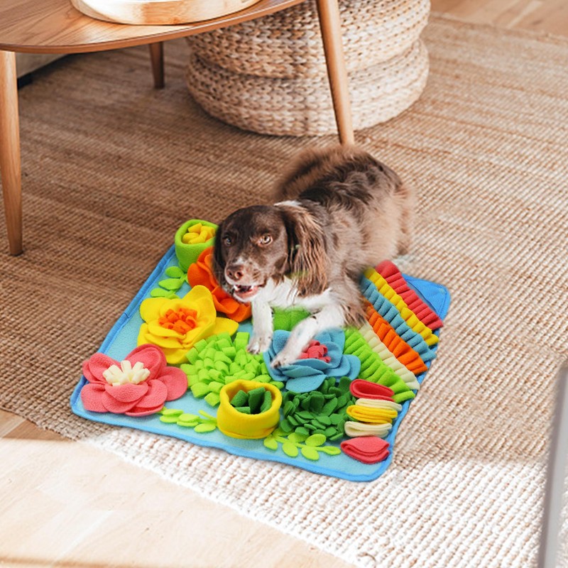 - 🐕【PET SNUFFLE MAT FOR ALL BREED SIZE DOGS】The pet sniffing mat by homelifthub, measuring 15.4 x 15.4 inches, is well made, colorful, and fresh, containing multiple flowers, leaves, and other natural elements to hide food spots for a variety of dogs, cats, and rabbits, among other pets.